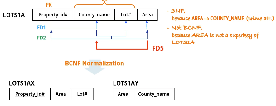 County_name이 prime 애트리뷰트로 3NF는 만족하지만 Area 가 superkey가 아니라 BCNF는 만족하지 못 한다.