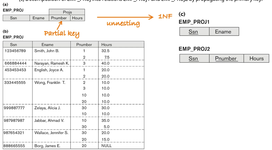 - nonatomic attribute를 별도의 릴레이션으로 분리하는 방법, 원래 릴레이션의 기본키를 같이 붙여서 내보낸다.